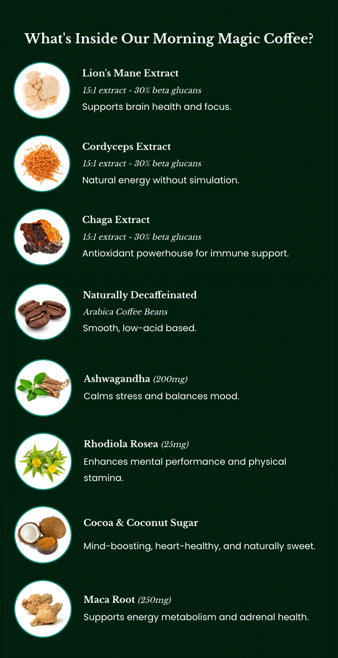 Morning Magic is a natural, decaf mushroom coffee alternative crafted for those who want a smoother, more balanced start to the day.