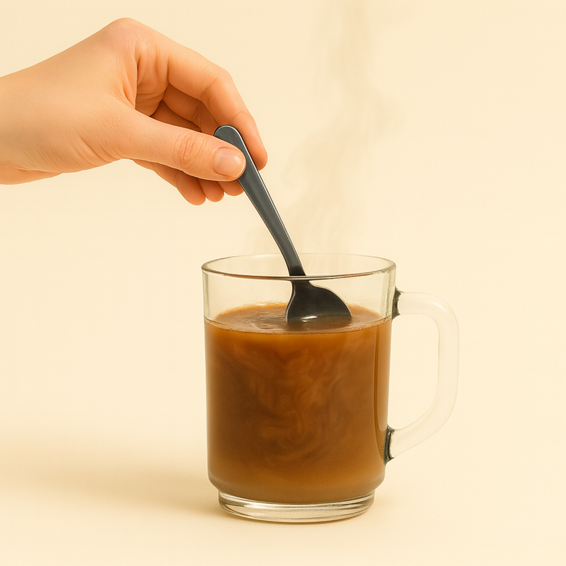 Compact Metal Scoop for Morning Magic Coffee. Perfect for portion control - 1 flat scoop is 8g. Creates smooth, perfectly formulated drinks in seconds.
